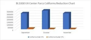 Figure 8: BL1000 UV Center Parcs Coliforms Reduction Chart